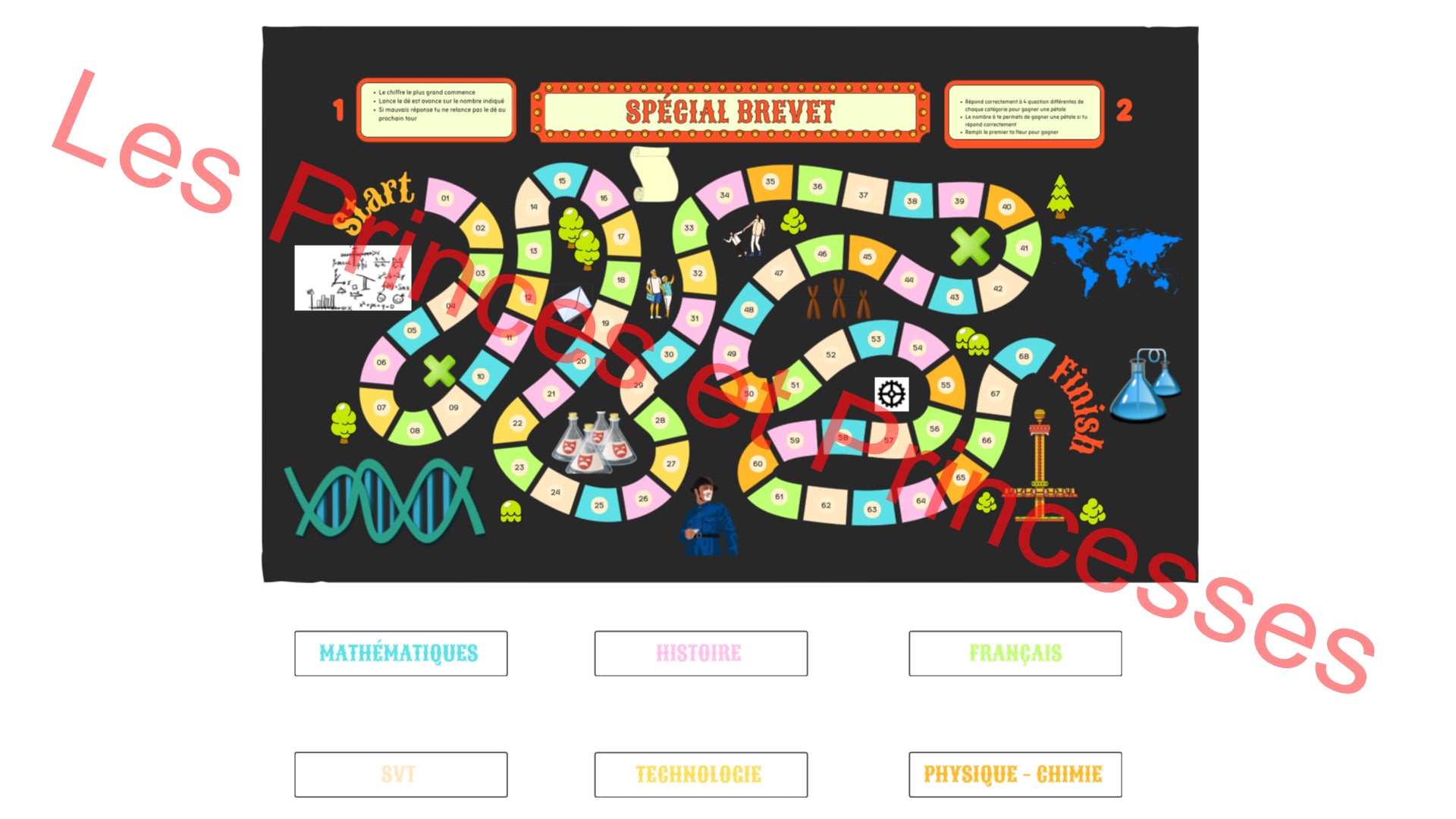 Le jeu comporte 6 catégories correspondant à chaque matière présente lors de l'examen national du brevet.